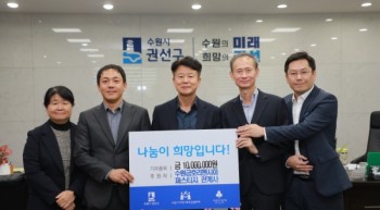 수원 금호 리첸시아 퍼스티지 관계사인 인피니플러스, 유당디앤씨, 엠비홀딩스가 지난 19일 권선구청을 방문해 후원금 1천만원..
